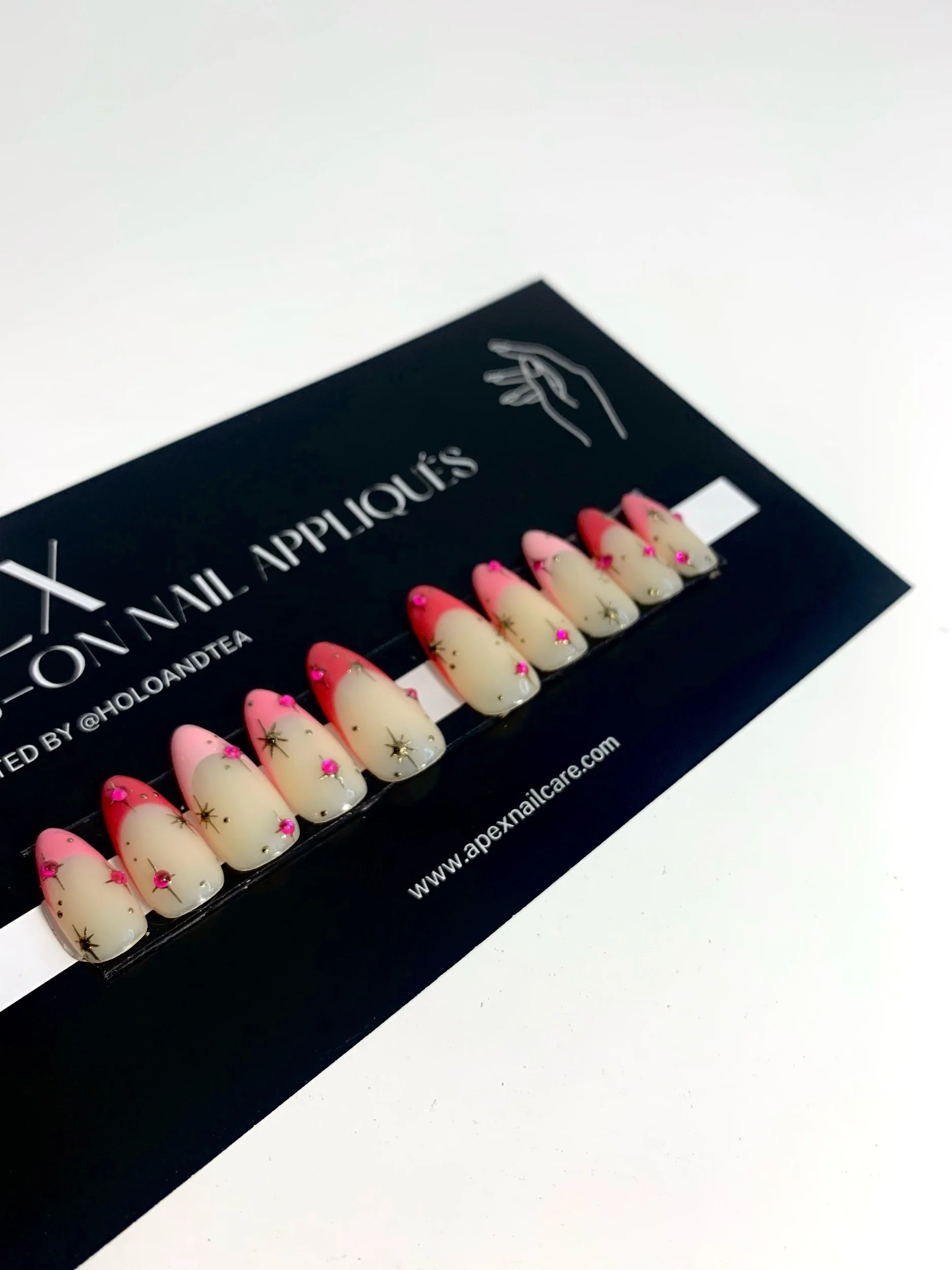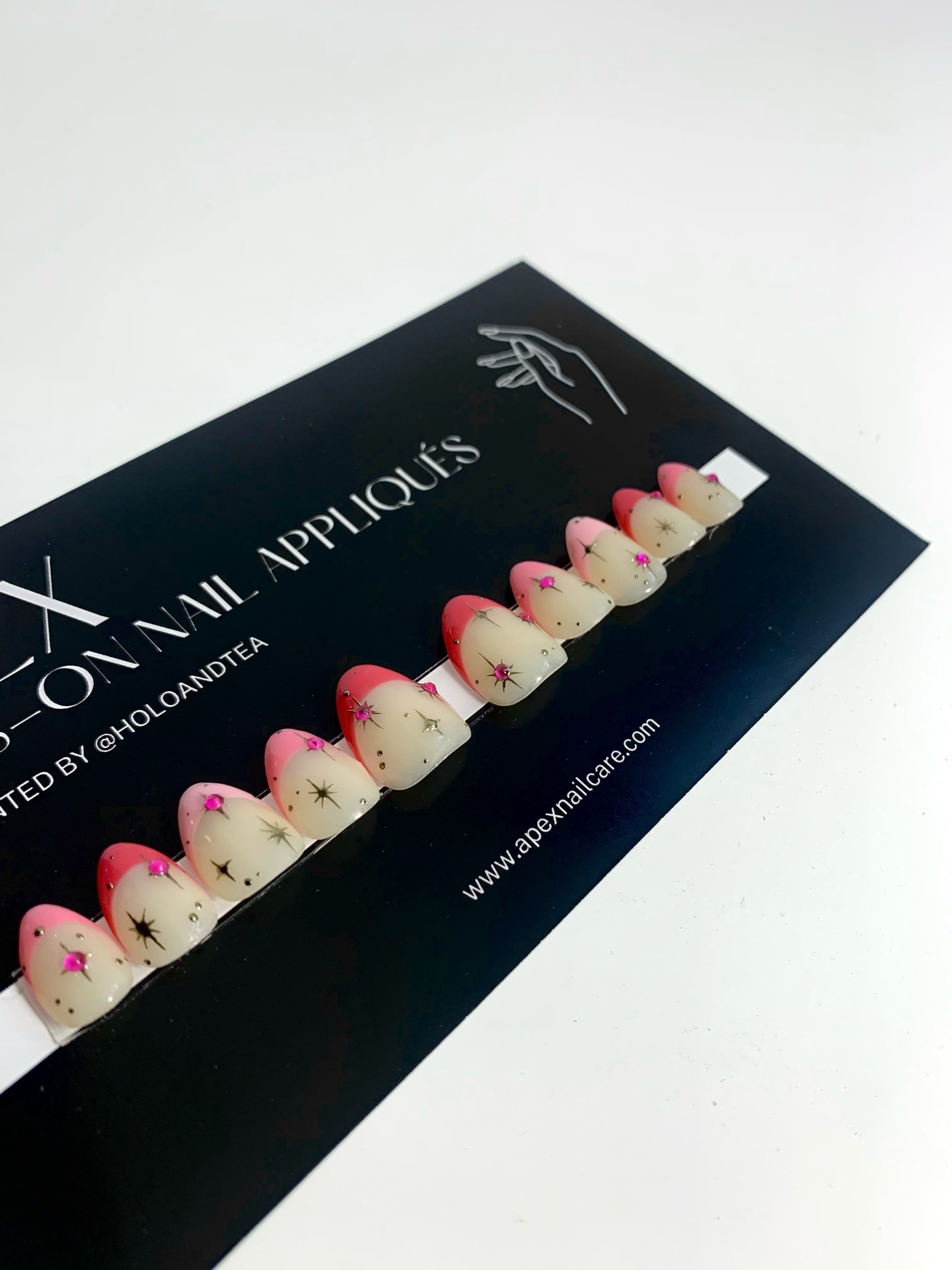 Each nail is meticulously hand-painted with precision, ensuring every detail is a work of art. With proper application and sizing, APEX Press-On Nail Appliqués can last 1-4 weeks, depending on your preferred application.