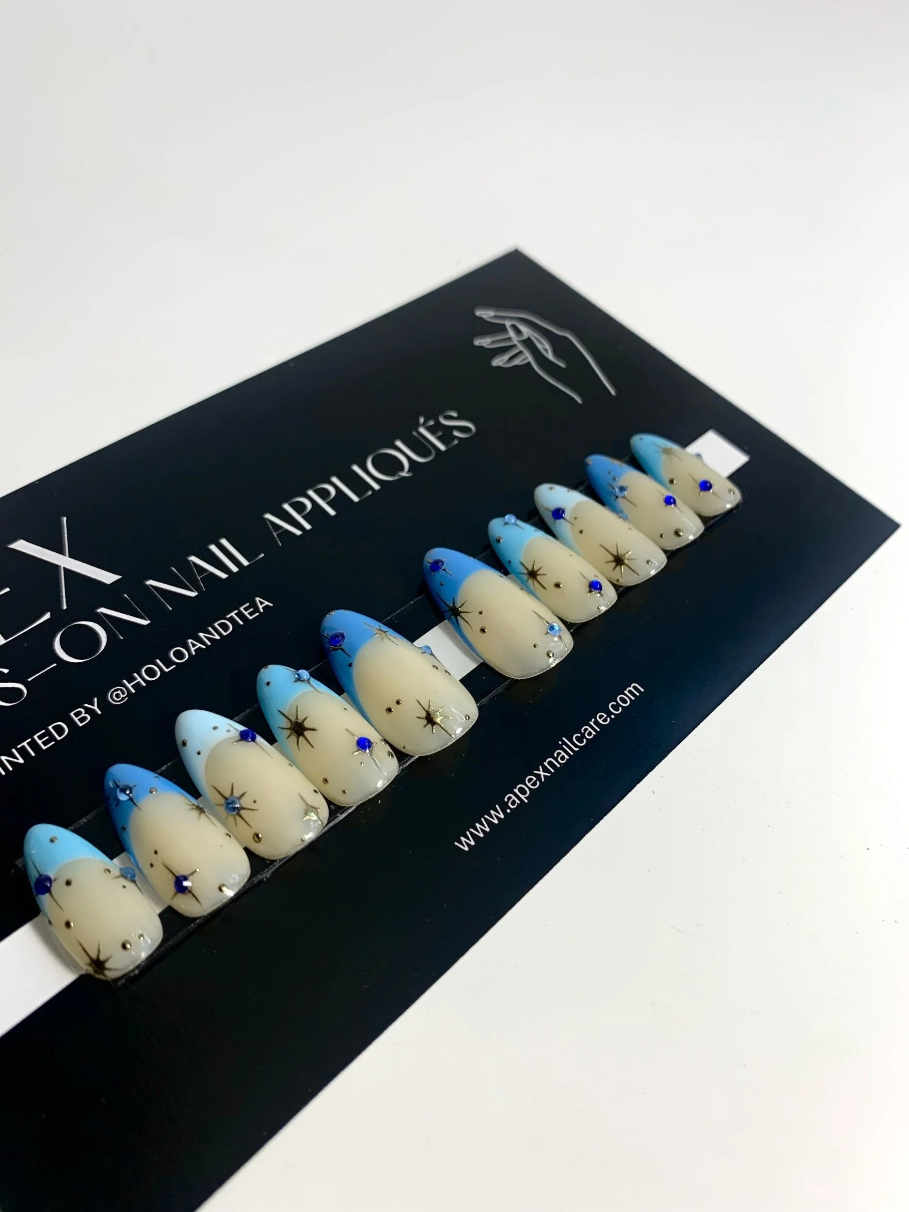 Each nail is meticulously hand-painted with precision, ensuring every detail is a work of art. With proper application and sizing, APEX Press-On Nail Appliqués can last 1-4 weeks, depending on your preferred application.