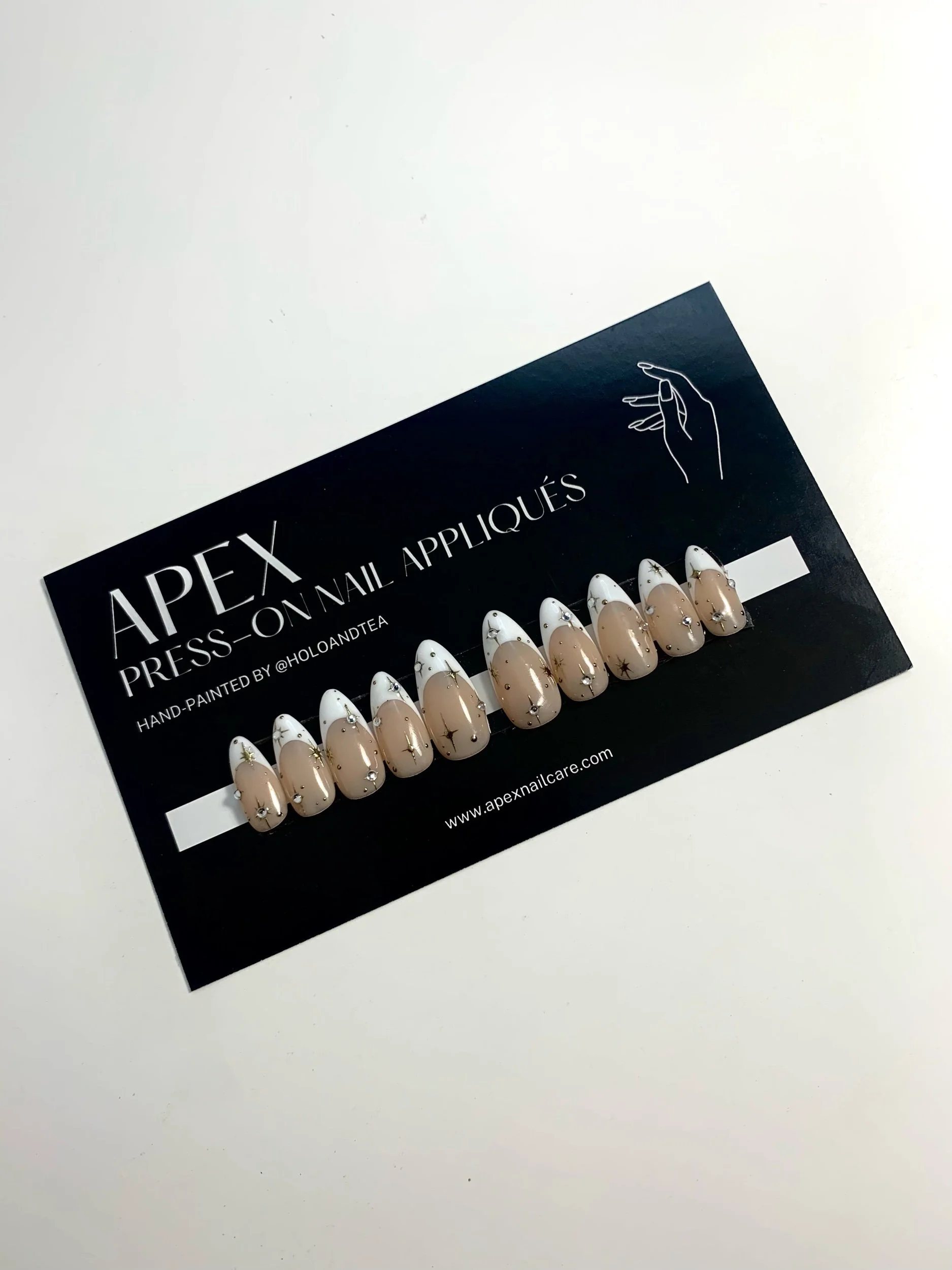 Each nail is meticulously hand-painted with precision, ensuring every detail is a work of art. With proper application and sizing, APEX Press-On Nail Appliqués can last 1-4 weeks, depending on your preferred application.