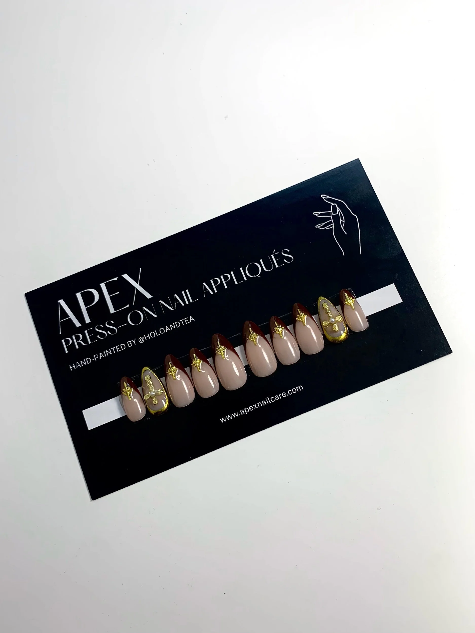 Each nail is meticulously hand-painted with precision, ensuring every detail is a work of art. With proper application and sizing, APEX Press-On Nail Appliqués can last 1-4 weeks, depending on your preferred application.