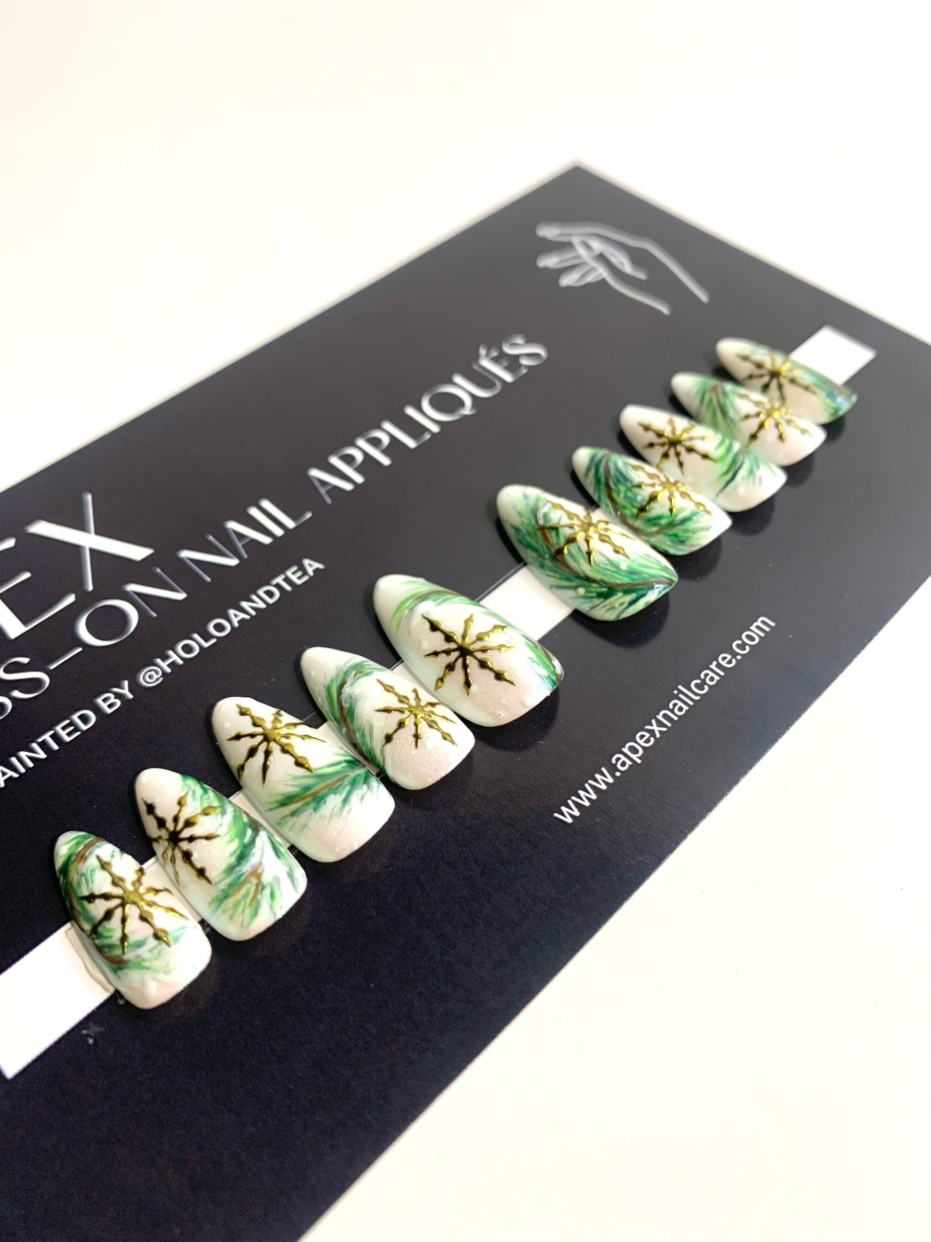Each nail is meticulously hand-painted with precision, ensuring every detail is a work of art. With proper application and sizing, APEX Press-On Nail Appliqués can last 1-4 weeks, depending on your preferred application.