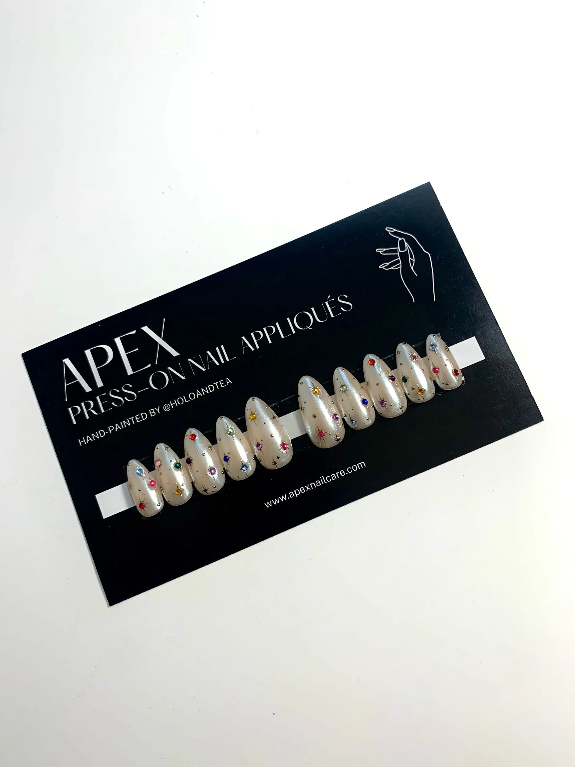 Each nail is meticulously hand-painted with precision, ensuring every detail is a work of art. With proper application and sizing, APEX Press-On Nail Appliqués can last 1-4 weeks, depending on your preferred application.